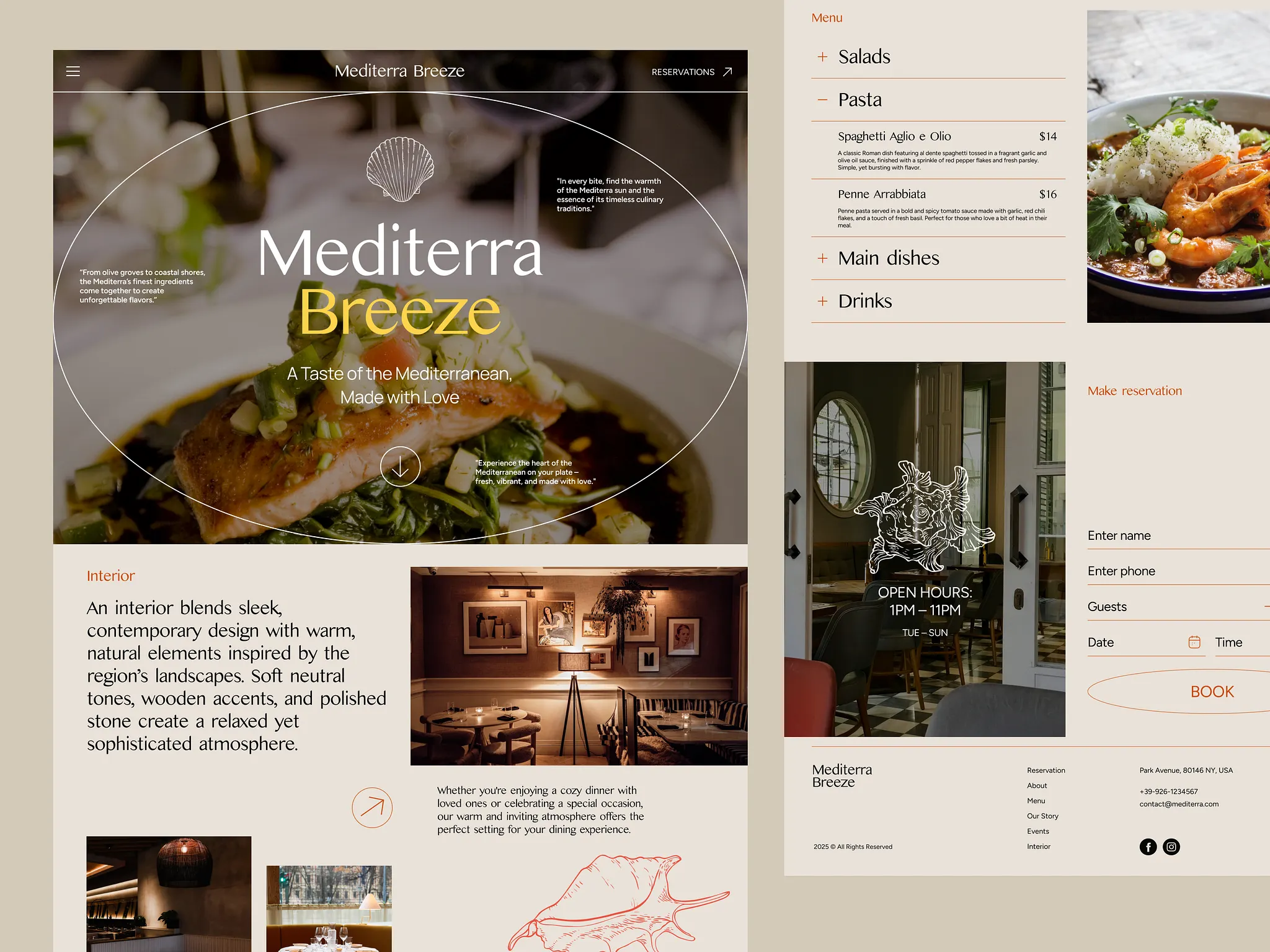 A comprehensive brand identity for Mediterra Breeze that captures the essence of Mediterranean cuisine with warm, inviting colors and elegant typography that reflects coastal sophistication.